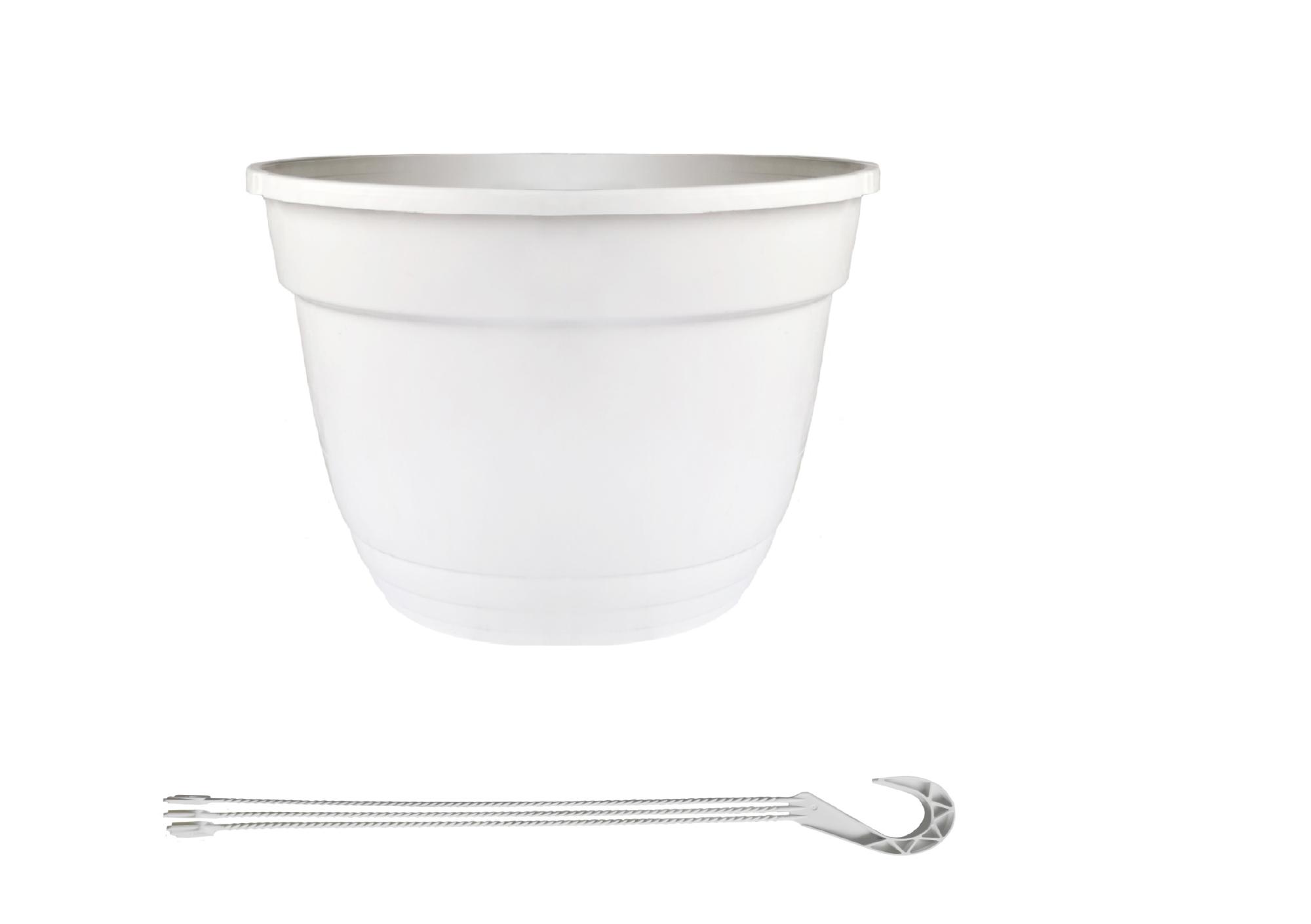 Кашпо выполнено из пластика и предназначено для посадки декоративных растений. Применяется как внутри, так и снаружи помещений. Подвешивается на трех держателях, объединенных удобным и крепким крючком на трех креплениях. Можно использовать как подвесное кашпо, или как отдельно стоящий горшок крепление съемное, дно устойчивое.
